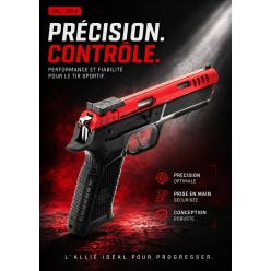 Grâce à sa crosse synthétique ergonomique et son chargeur amovible, cette arme combine confort, rapidité de manipulation et fiabilité, même après de longues séances au stand.
